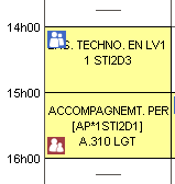 Les séances d’Accompagnement Personnalisé apparaissent dans l’Emploi du temps de ProNote avec une icône rouge symbolisant un enseignant et un élève.