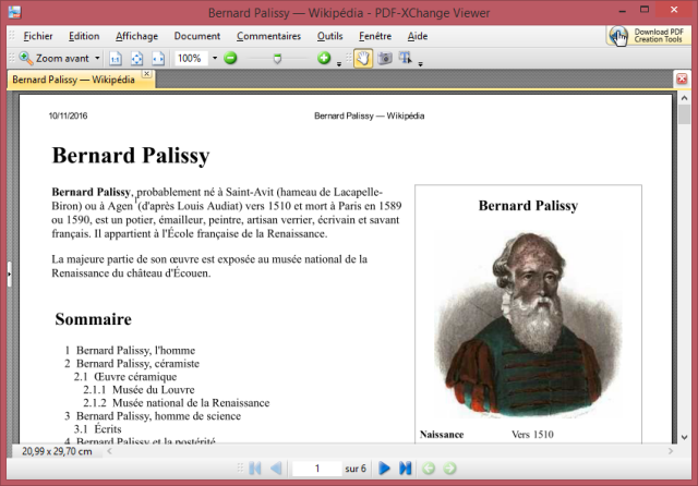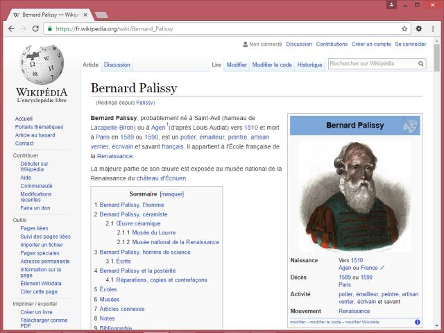 Vous êtes sur une page Web, par exemple l’histoire de Bernard Palissy