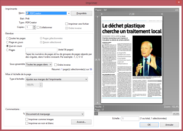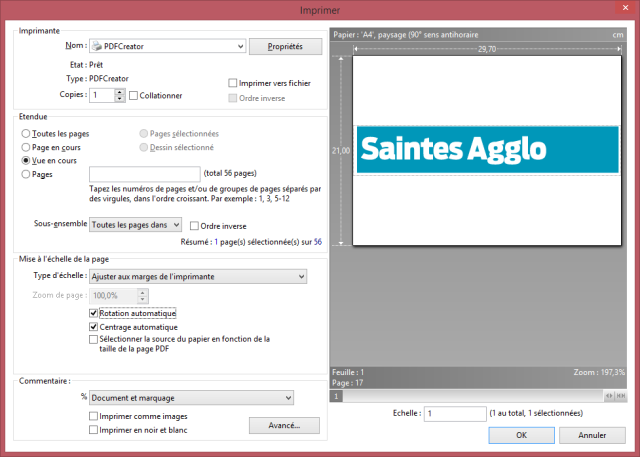 - Sélectionner l’imprimante PDFCreator