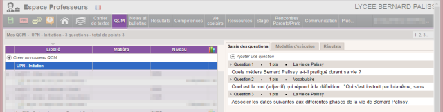 Pour l’exemple ici : “Quels métiers Bernard Palissy a-t-il pratiqué durant sa vie ?”