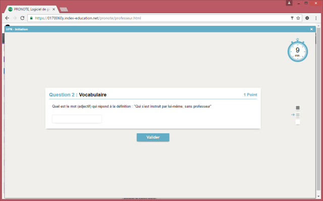 - Lorsque les élèves peuvent revenir en arrière, ils utilisent les flèches de navigation pour passer à la question suivante sans valider leur réponse par le bouton VALIDER. Leurs réponses apparaissent donc vides à la fin du devoir.