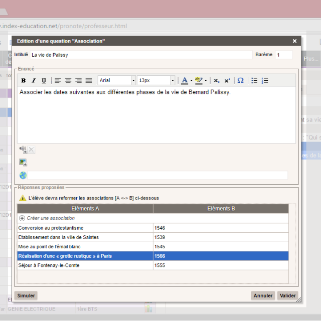 « Associer les dates suivantes aux différentes phases de la vie de Bernard Palissy. »