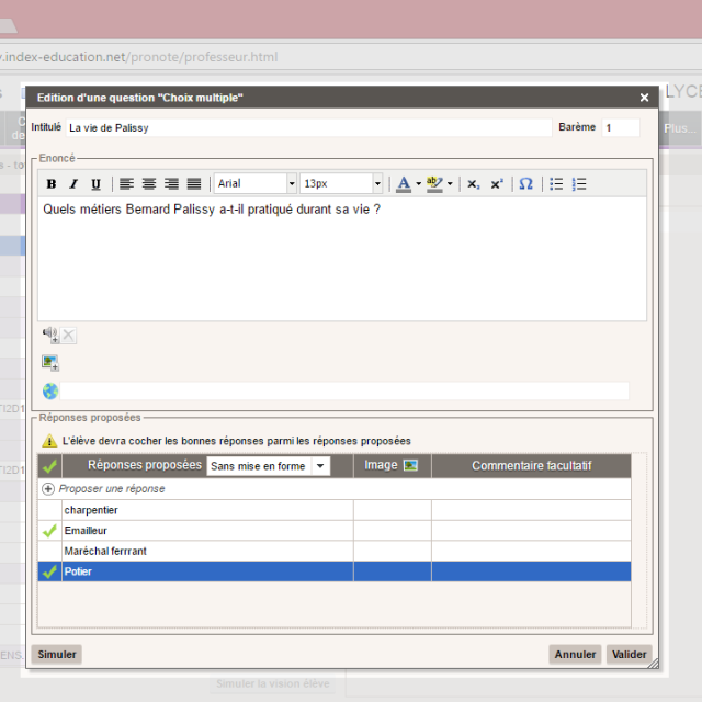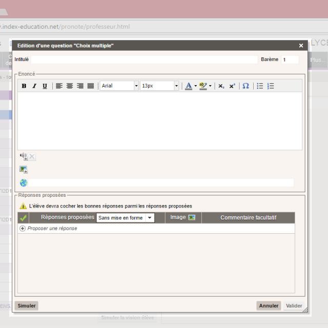 - L’édition des QCM est accessible depuis ProNote Web, des fonctionnalités plus avancées sont disponibles sous le client ProNote.