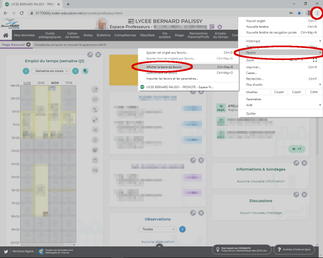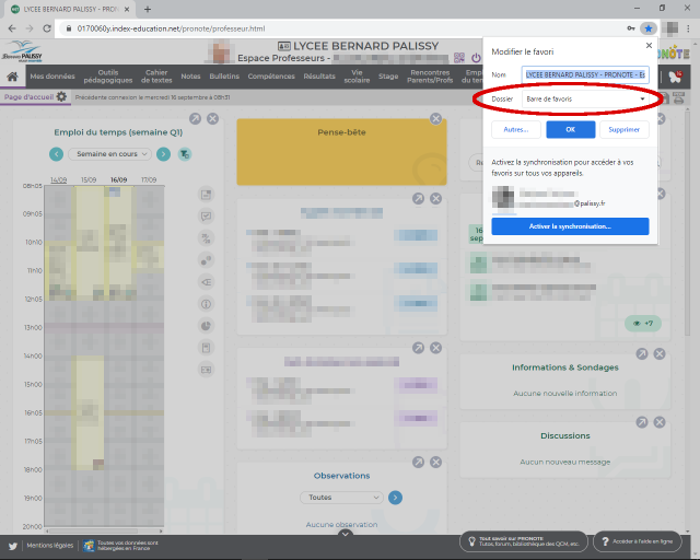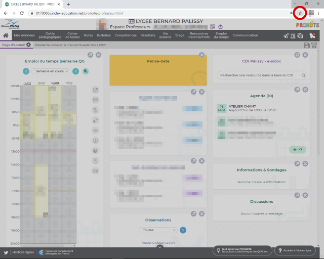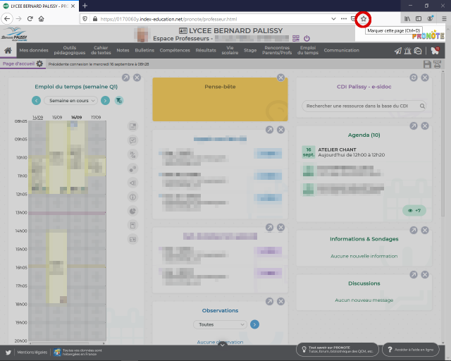 Placer un marque-page vers Pronote Un marque-page ou un favori