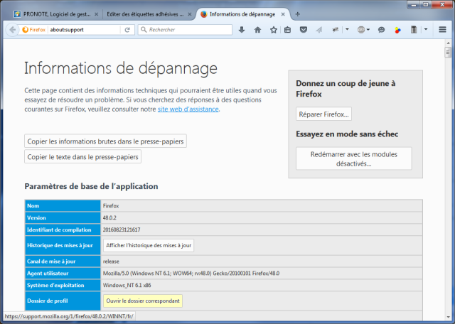 - En face le paramètre “Dossier de profil”, cliquer sur le bouton “Ouvrir le dossier correspondant”